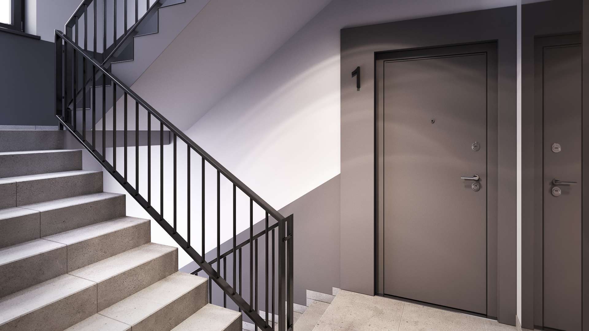 Na pierwszej kondygnacji znajduje się przestronny salon z aneksem kuchennym, z którego można wyjść na duży balkon o powierzchni 9,54 m², idealny na poranną kawę lub wieczorny odpoczynek. Dopełnieniem tego poziomu jest łazienka dla gości.