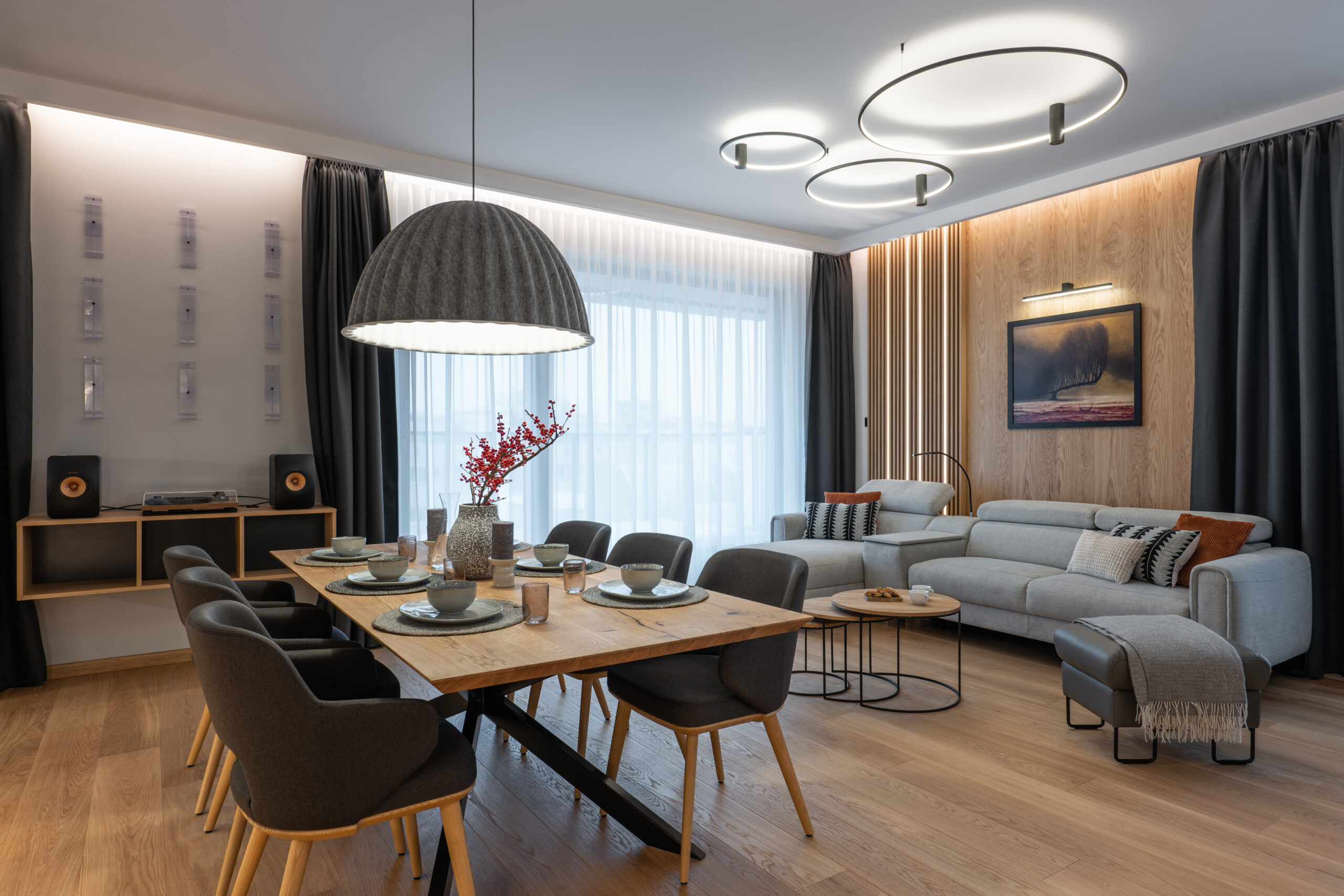 Przyszli mieszkańcy mogą cieszyć się niepowtarzalną przestrzenią, urządzoną w sposób przemyślany i odpowiadający na założenia wynikające z ich potrzeb.